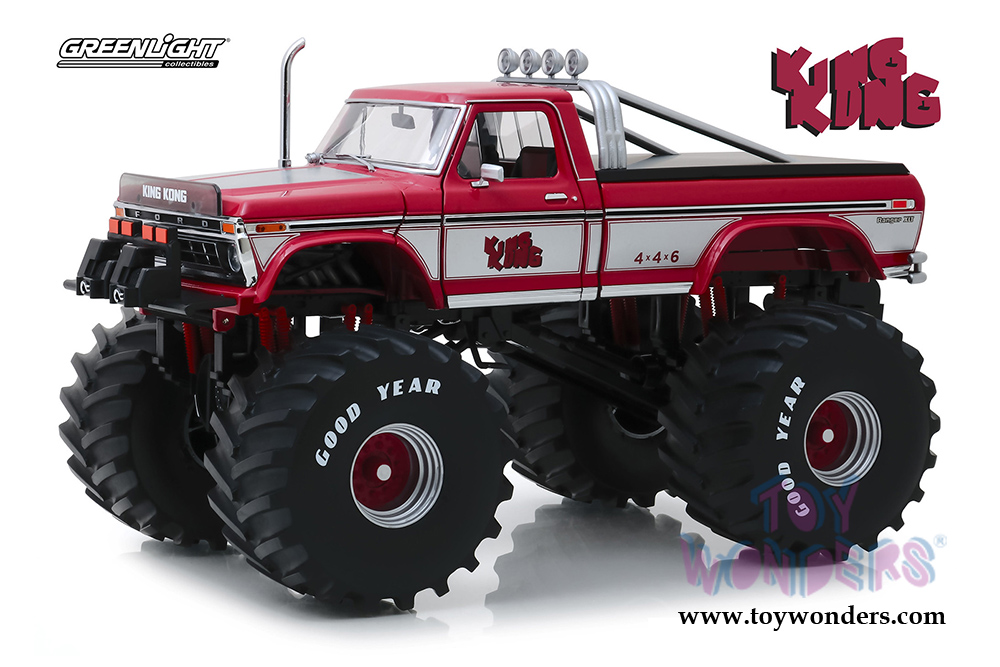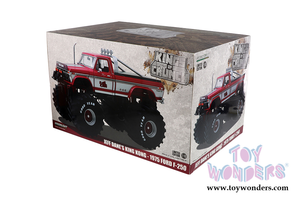 13539 Greenlight - Kings of Crunch Ford F-250 Monster Truck (with 66-inch Tires) - Jeff Dane's King Kong. 1:18 scale diecast collectible model. This Ford monster truck is a 12.5"L x 5.75"W x 6.5"H diecast metal car. This '75 monster truck is manufactured by Greenlight. Limited Edition. 13539 is in PINK color. Individually packed in a box. Box size: 15.5"Lx 10"Wx 9.5"H.
