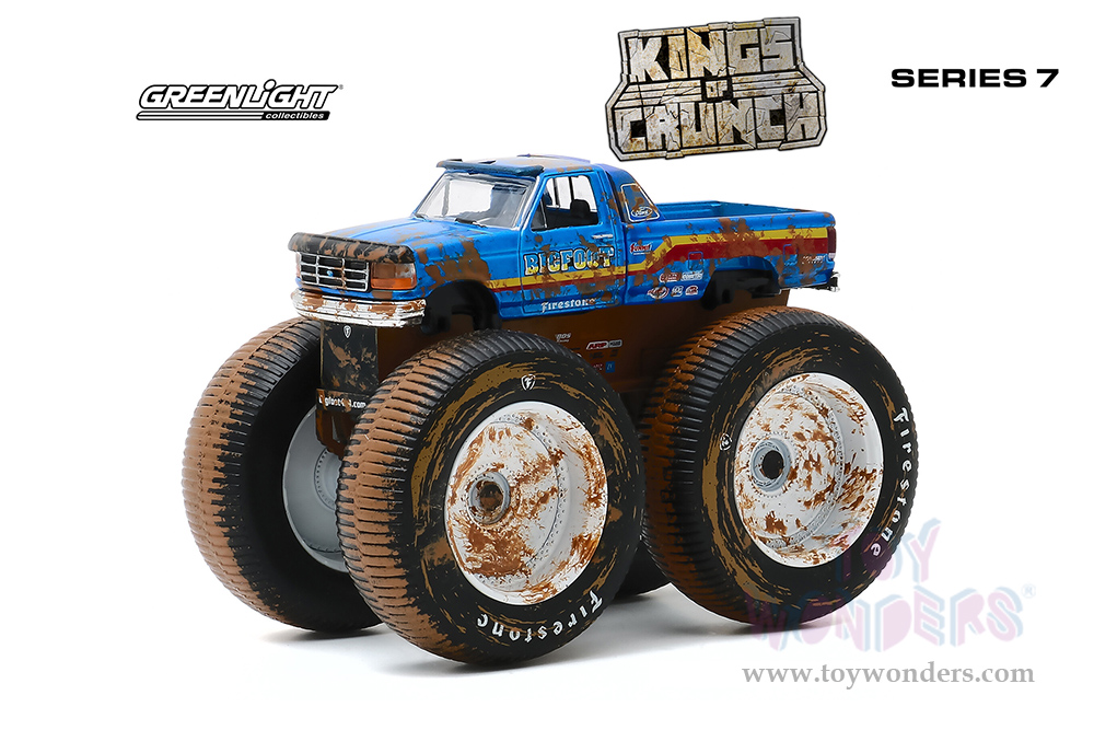 Greenlight - Kings of Crunch Series 7 | Ford F-250 Monster Truck - Bigfoot #7 (Dirty Version)(1996, 1/64 scale diecast model car, Blue) 49070F/48