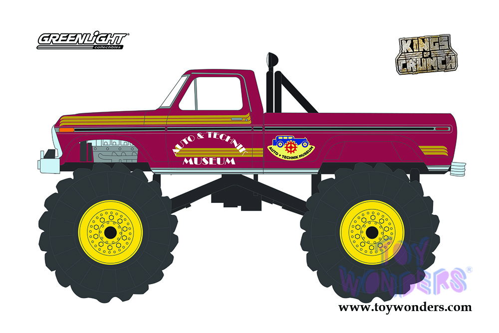 49090D/48 Greenlight - Kings of Crunch Series 9 | 1979 Ford F-250 Monster Truck - Super Monster (6 pcs. set). 1:64 scale diecast collectible model car. Dimensions of each Monster Truck is 3.75" Long. 6 pc set. Each car individually blister carded. Card size: 7.5" x 5.5". These cars are manufactured by Greenlight. Item 49090D/48 is in RED.