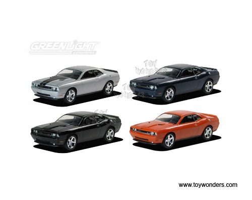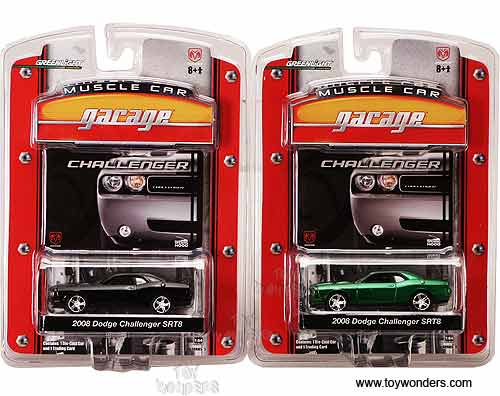 12671/12 Greenlight Muscle Car Garage - Dodge Challenger Hard Top. 3" long die cast cars with openable hood. Card size: 5.5" x 7.5". These cars are manufactured by Greenlight. Assortment includes:
