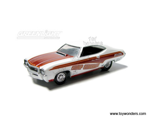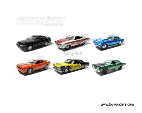 12670/48 Greenlight Muscle Car Garage - Series 9. 3" long die cast cars with openable hood. 12 pcs/inner. Each car individually blister carded. Card size: 5.5" x 7.5". These cars are manufactured by Greenlight. GM is a trademark of the General Motors Corporation. Assortment includes: 1966 Custom Ford Galaxie 500 XL (500-XL, 500XL)1967 Chevrolet Corvette 4271968 Custom Buick GS 400 (GS-400, GS400)1969 Plymouth Road Runner2004 Mercury Marauder2008 Dodge Challenger SRT8 (SRT-8) Case pack: 48 pcs. Sold in lots of 12 pcs. Price quoted is for 1 pcs.