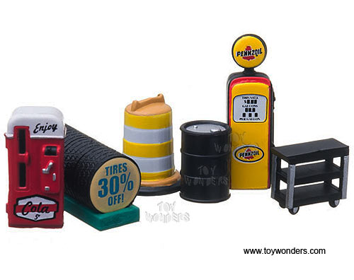 Greenlight Diorama - Mechanic's Corner Series 8 | Hot Pursuit Central Command Texas Department of Public Safety (1/64 scale diecast/plastic model, Orange/Gray) 57083