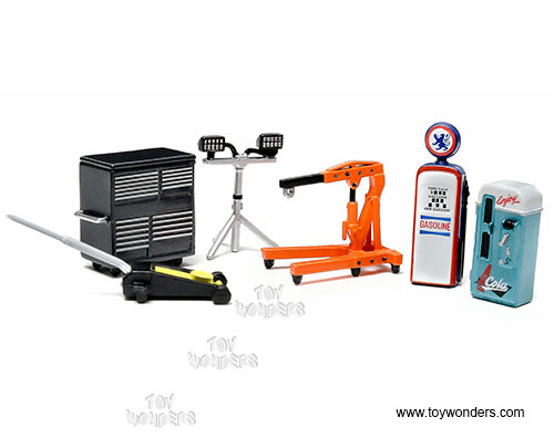 Greenlight Diorama - Mechanic's Corner Series 8 | Hot Pursuit Central Command Texas Department of Public Safety (1/64 scale diecast/plastic model, Orange/Gray) 57083