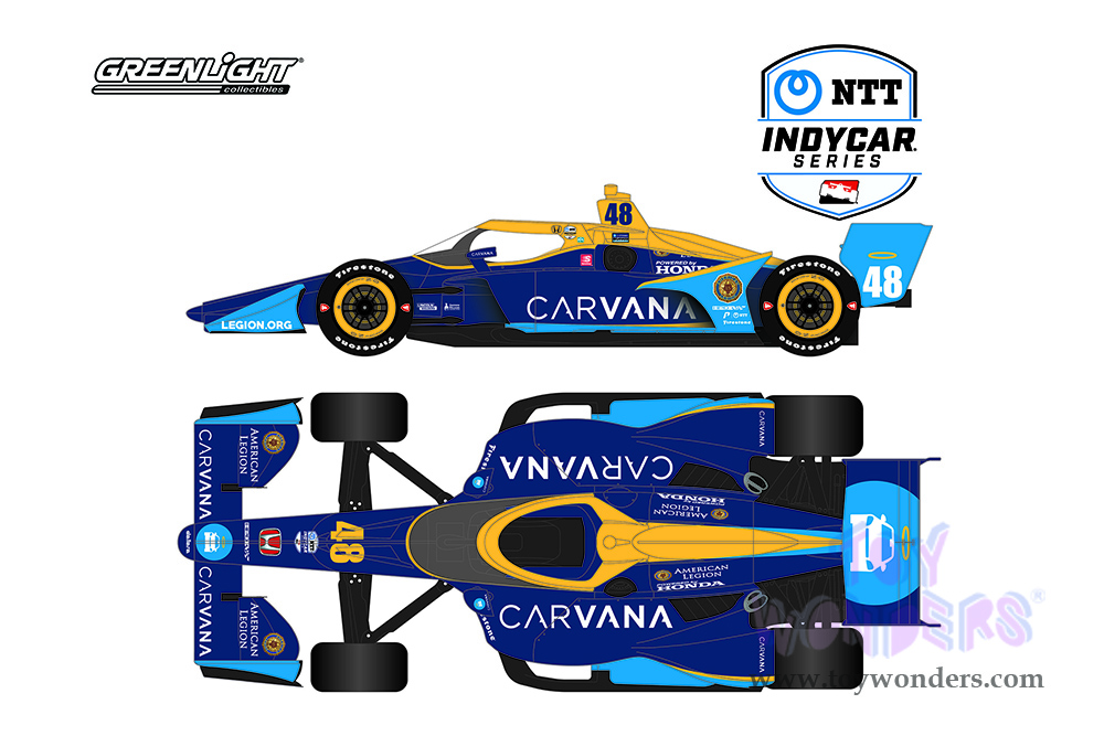 Greenlight - NTT IndyCar Series - #48 Jimmie Johnson / Chip Ganassi Racing, Carvana (Road Course Configuration) (2021, 1/18 scale diecast model car, Blue/Yellow) 11105
