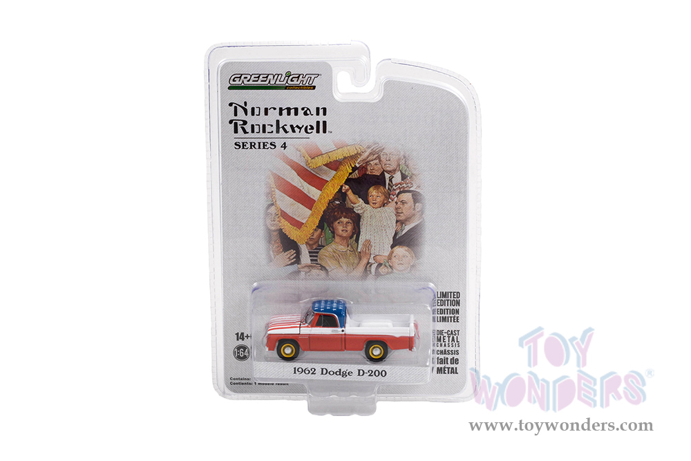 Greenlight - Norman Rockwell™ Series 4 | Dodge D-200 Pickup Truck (1962, 1/64 scale die cast model car, Red/White/American Flag Graphics) 54060C/48