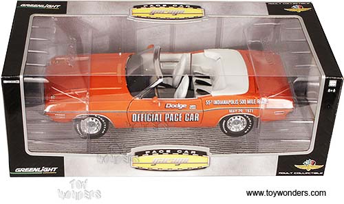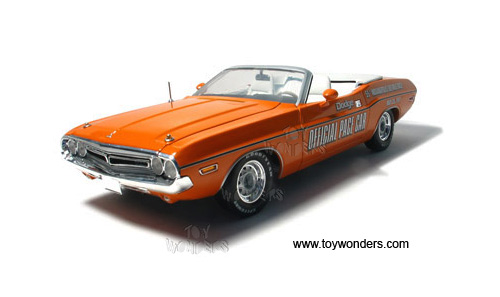 Greenlight Pace Car Garage - Dodge Challenger Convertible Indy 500 (1971, 1/18 scale diecast model car, Orange) 11802