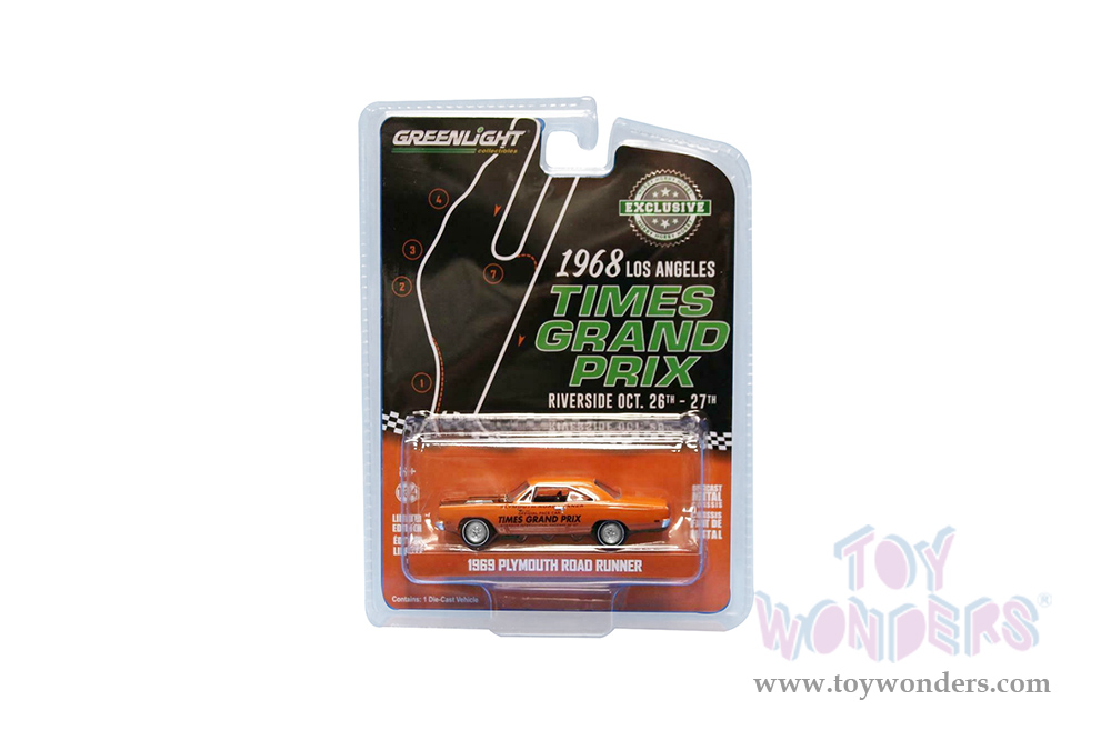Greenlight - Plymouth Road Runner - 1968 Los Angeles Times Grand Prix at Riverside International Raceway Official Pace Car (1969, 1/64 scale diecast model car, Orange) 30273/48