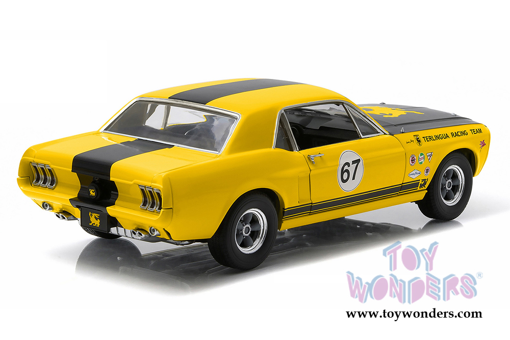 Greenlight Racing Tribute - Ford Mustang Hardtop #67 Terlingua Racing Team (1967, 1/18 scale diecast model car, Yellow w/ Black Stripes) 12934