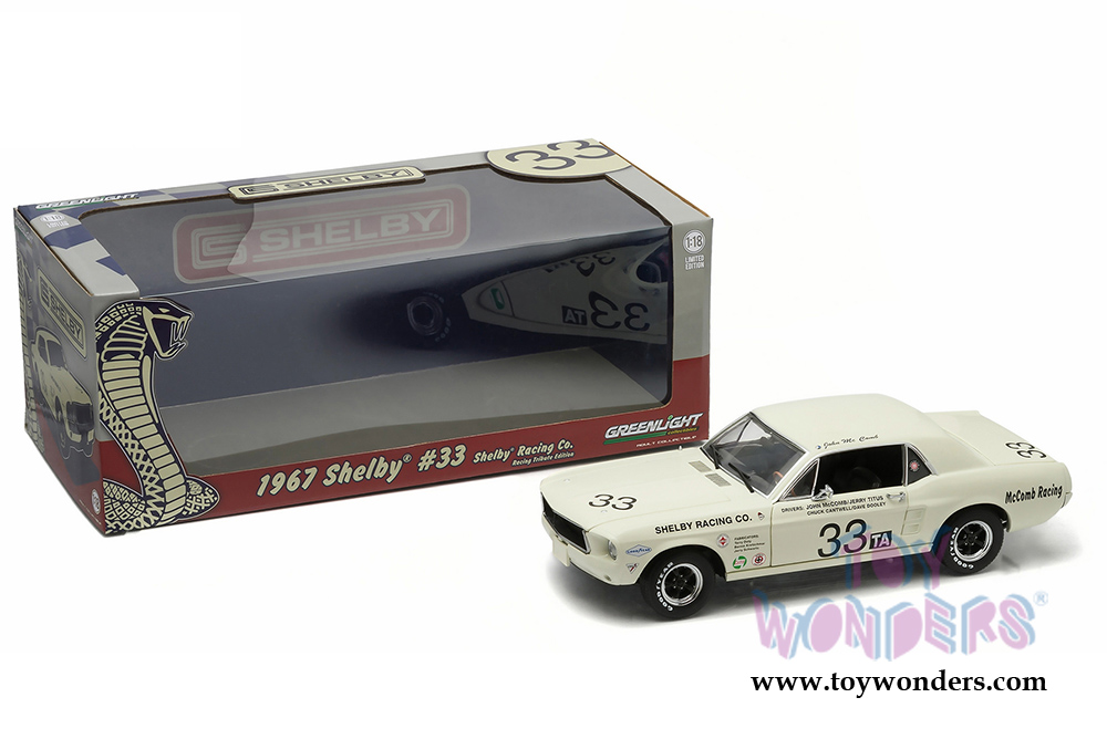 Greenlight Racing Tribute - Ford Shelby Mustang Hard Top #33 John McComb/Jerry Titus (1967, 1/18 scale diecast model car, White) 12935