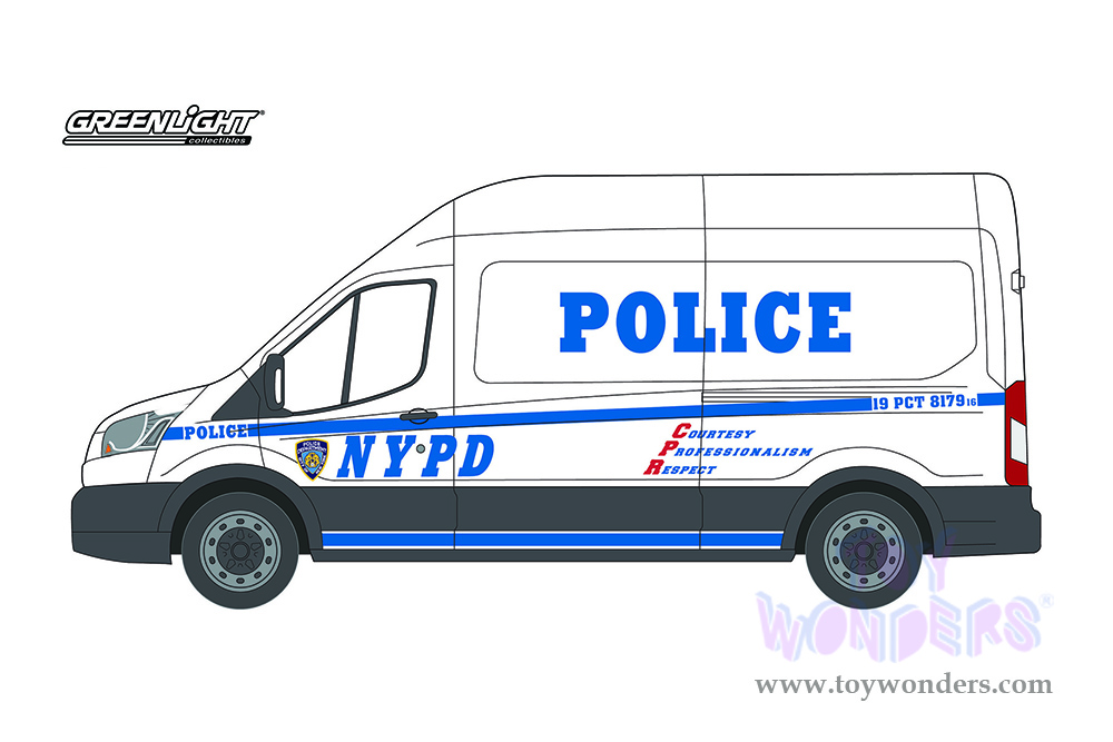 Greenlight - Route Runners Series 3 | Ford Transit LWB High Roof Van "NYPD" (New York City Police Department) (2015, 1/64 scale diecast model car, White) 53030A/48