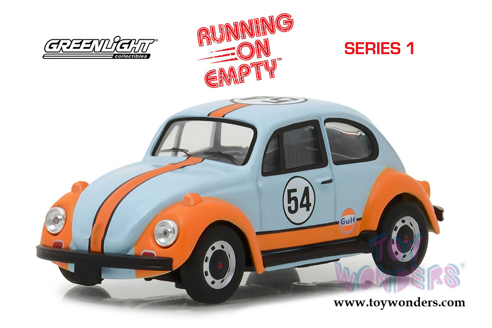 Greenlight - Running on Empty Series 1 | Volkswagen Beetle #54 - Gulf Oil (1966, 1/43 scale diecast model car, Light Blue/Orange) 87010D/24