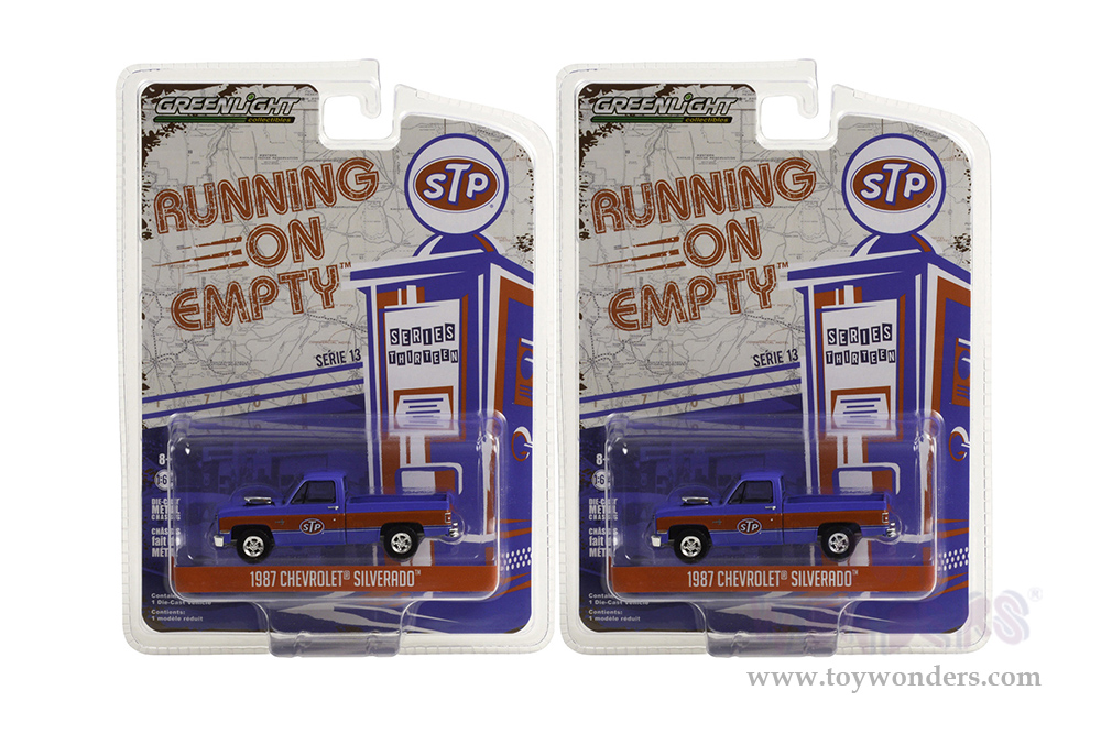 Greenlight - Running on Empty Series 13 | Chevrolet® Silverado Pickup Truck with Blown Engine "STP" (1987, 1/64 scale diecast model car, Red/Blue) 41130C/48
