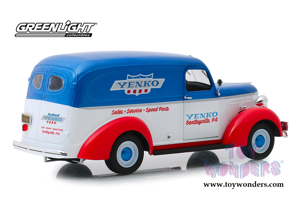 Greenlight - Running on Empty Series 3 | Chevrolet® Panel Truck - YENKO sales and service (1939, 1/24 scale diecast model car, White/Blue/Red) 85041