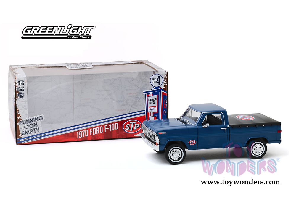Greenlight - Running on Empty Series 4 | Ford F-100 Pick Up Truck with Bed Cover STP (19670, 1/24 scale diecast model car, Blue) 85053