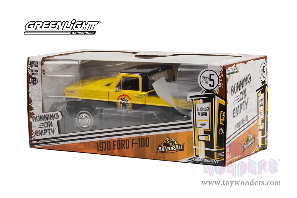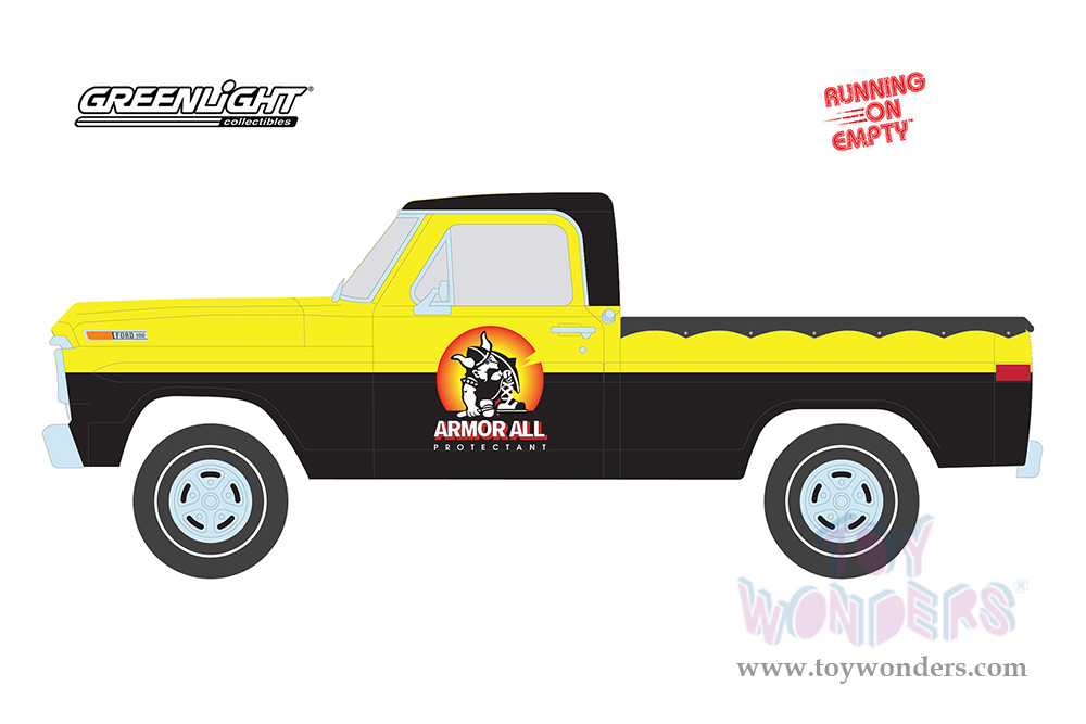 Greenlight - Running on Empty Series 5 | Ford F-100 Pickup Truck Armor All (1970, 1/24 scale diecast model car, Black/Yellow) 85063
