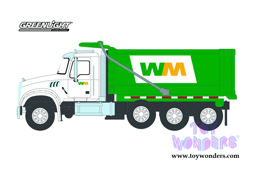 Greenlight - S.D. Trucks Series 12 | Mack® Granite Dump Truck Waste Management (2020, 1/64 scale diecast model car, White/Green) 45120B/48