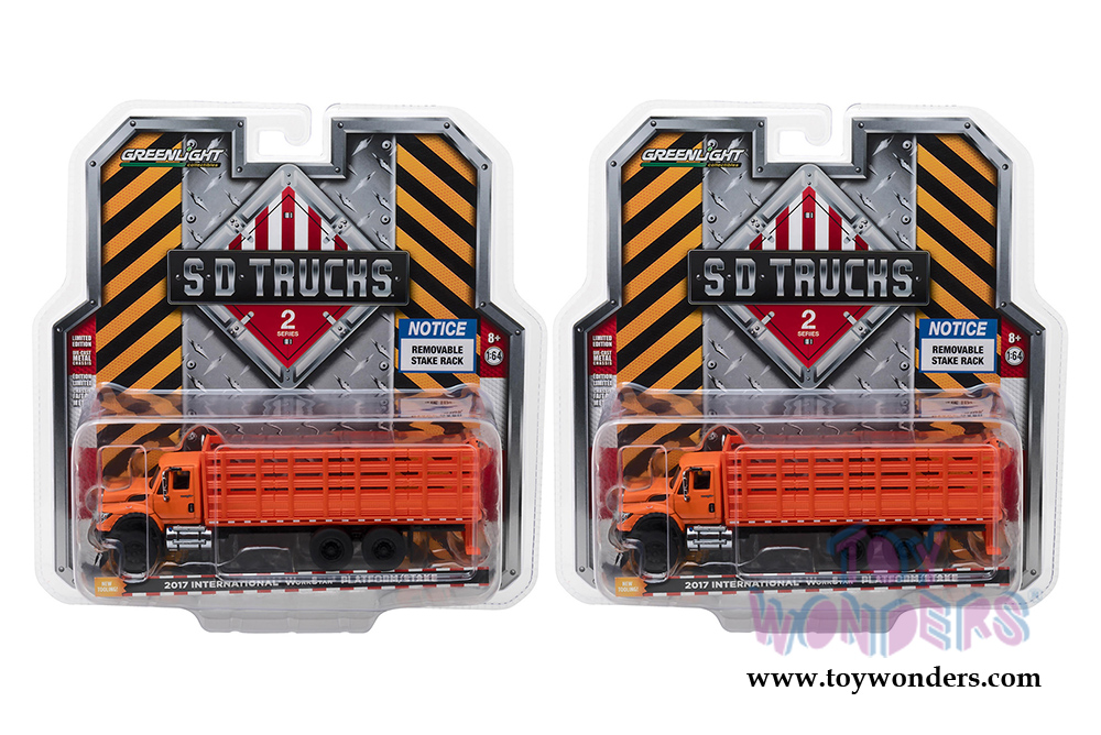 Greenlight - S.D. Trucks Series 2 | International® WorkStar® Platform Stake Truck (2017, 1/64 scale diecast model car, Orange) 45020B/48