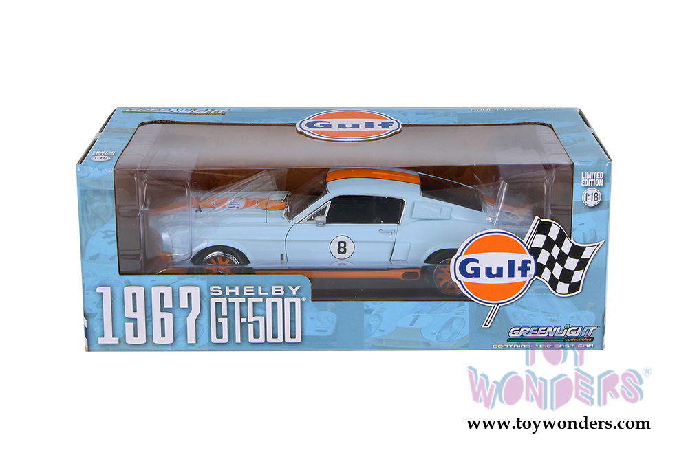 Greenlight - Shelby GT-500 Gulf Oil #8 Hard Top (1967, 1/18 scale diecast model car, Light Blue w/ Orange Stripes) 12954