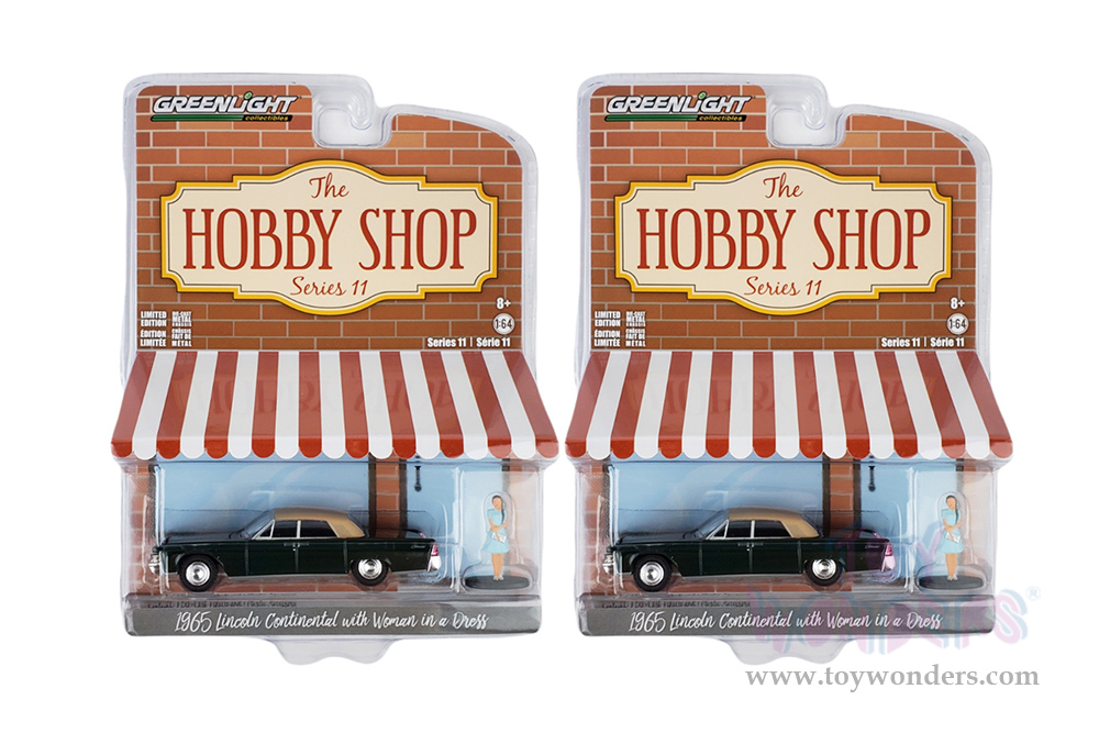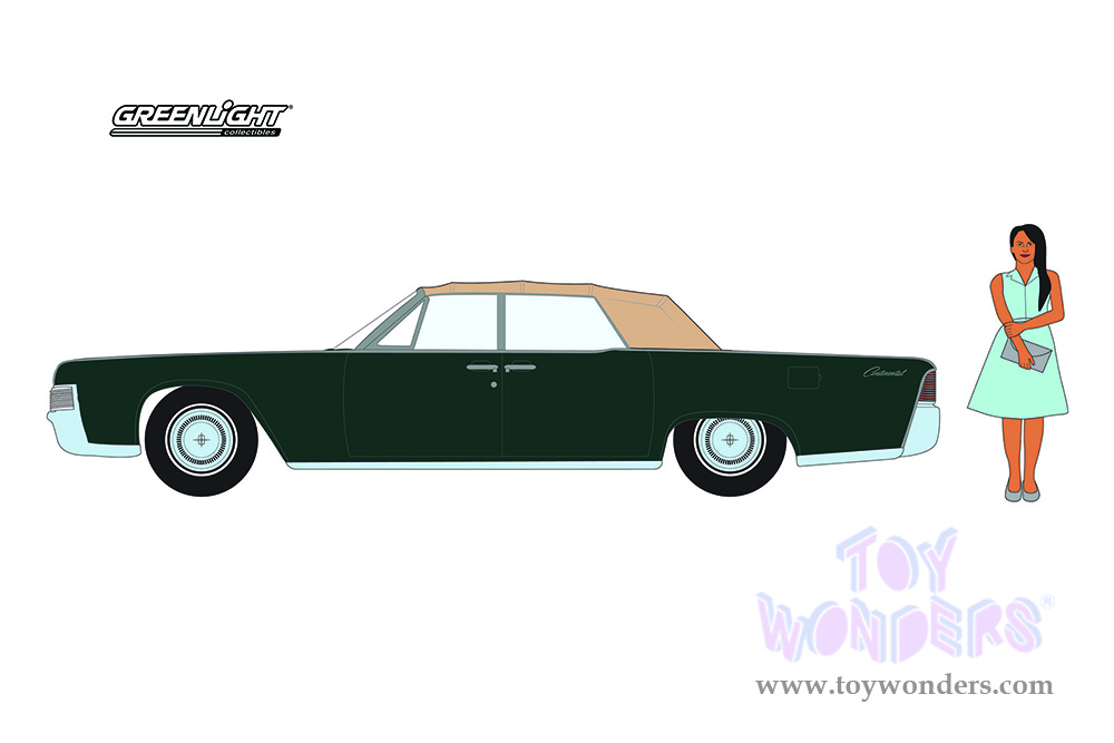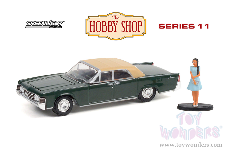 Greenlight - The Hobby Shop Series 11 | Lincoln Continental Convertible and Woman in a Dress (1965, 1/64 scale diecast model car, Spanish Moss Green/Tan) 97110B/48