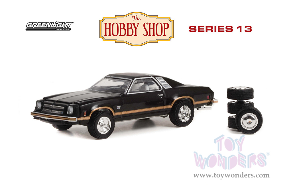 Greenlight - The Hobby Shop Series 13 | Chevrolet® Chevelle Laguna S2 with Spare Tires (1976, 1/64 scale diecast model car, Black with Gold trimming) 97130B/48