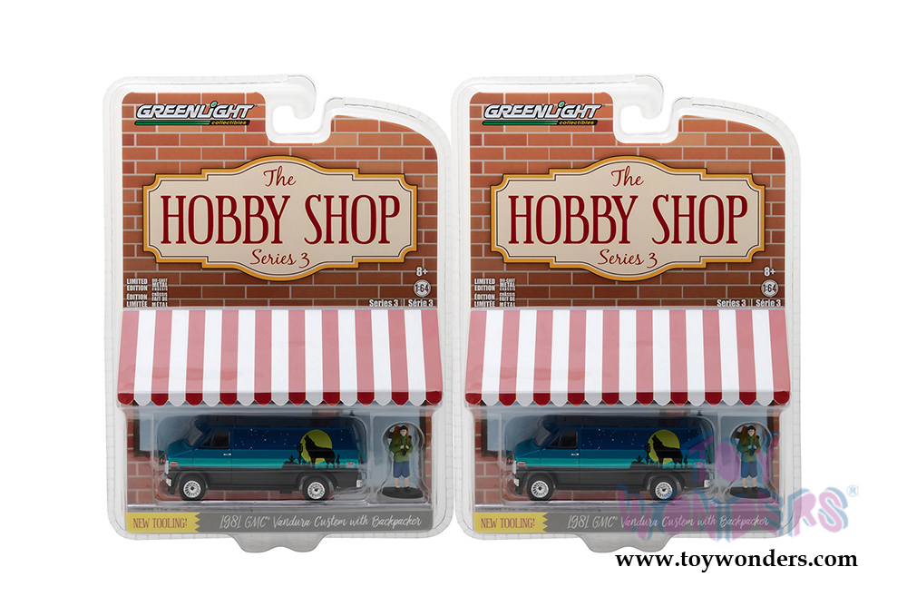 Greenlight - The Hobby Shop Series 3 | GMC® Vandura Custom with Backpacker (1981, 1/64 scale diecast model car, Blue) 97030C/48