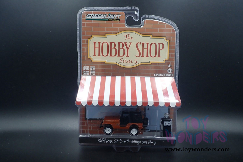 Greenlight - The Hobby Shop Series 5 | Jeep CJ-5 with Vintage Gas Pump (1974, 1/64 scale diecast model car, Copper Metallic) 97050D/48