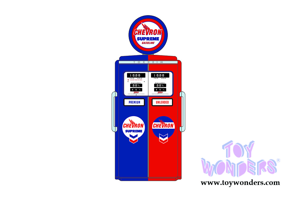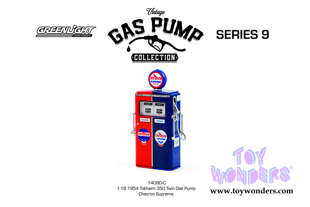 Greenlight - Vintage Gas Pumps Series 9 | 1954 Tokheim 350 Twin Gas Pump - Chevron Supreme (1/18 scale diecast model, Red/Blue) 14090C