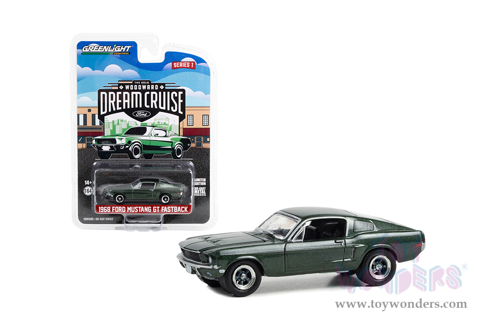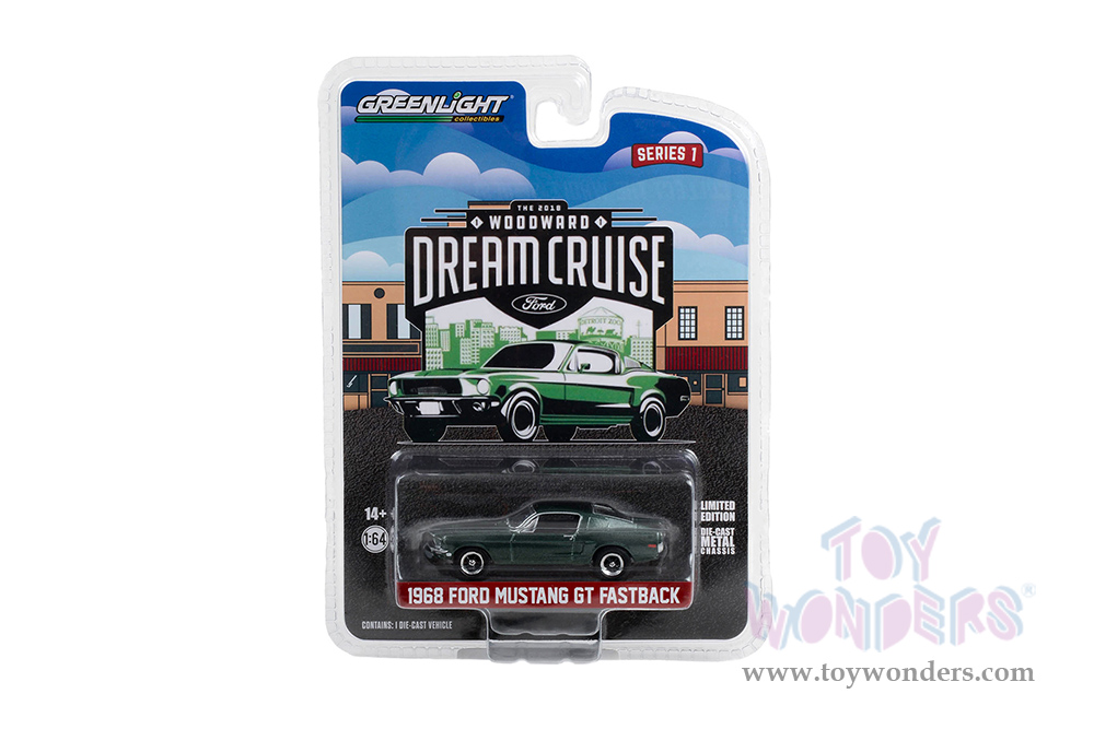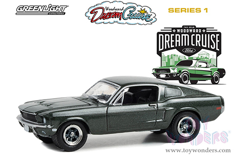 Greenlight - Woodward Dream Cruise Series 1 | Ford Mustang GT Fastback "24th Annual Woodward Dream Cruise Featured Heritage Vehicle" (2018) (1969, 1/64 scale diecast model car, Green Metallic) 37280E/48