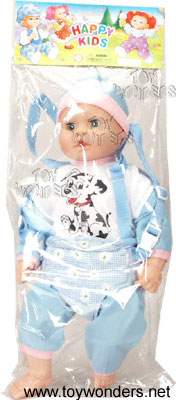 20228EC Happy Doll w/Carrier. 22" soft stuffed baby doll with outfit, hat and a carrier. Package size: 25"x9.5".