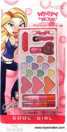 21665A Happy Hour Fashion Make Up Set. This make-up set comes with real cosmetics. Safety tested formulated, and passed US & EU full set certificate. Card size: 13"L x 7"W. Assorted styles. 48 pcs/inner.