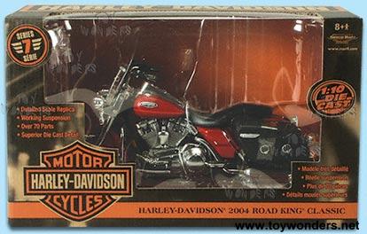 36941GR ERTL Harley Davidson Road King. 1:10 scale diecast model. Series #7. This is a 9.25" long x 4.5" high diecast motorcycle with working suspension, steering and kickstand. This bike is manufactured by ERTL- Harley Davidson.