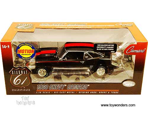 Highway 61 Baldwin Motion - Chevy Camaro Hard Top (1969, 1:18, Black w/ Red Stripes) 50865