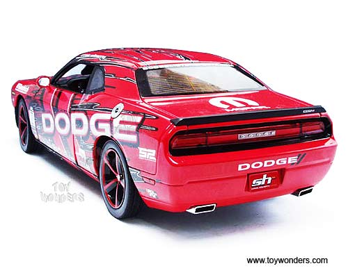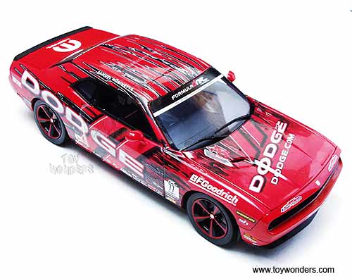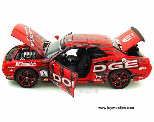 50858 Highway 61 - 2010 Dodge Challenger Drift Car Driver Samuel Hubinette #77. 1:18 scale diecast collectible model car. This Dodge Challenger is a 10.75"L x 4"W x 3"H die cast car with openable doors, hood & trunk. Manufactured by Highway 61. Individually packed in a window box. Box size is 13.75"L x 6.25"W x 5.75"H. 50858 is in RED color with Black stripes.