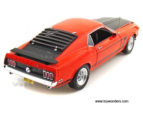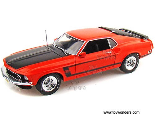 50728 Highway 61 - 1969 Ford Mustang Hard Top. 1:18 scale diecast collectible model car. This Ford Mustang is a 10"L x 3.5"W x 2.75"H die cast metal car with openable doors, hood & trunk, fully detailed engine, working suspension and steering, and soft interior & soft rubber tires. This 1969 Ford Mustang is manufactured by Highway 61. Item 50728 is in CALYPSO CORAL color with Black hood. Individually packed in a window box. Box size: 13.75"L x 6.5"W x 5.75"H.