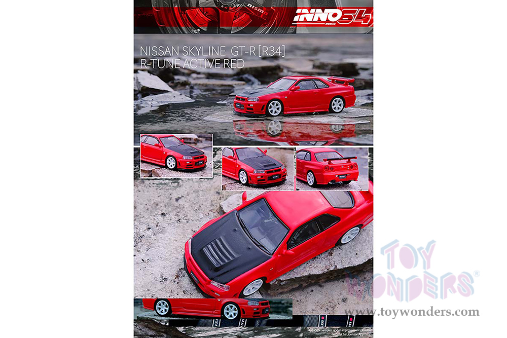 Inno Models - Nissan Skyline GT-R (R34) R-TUNE (1/64 scale diecast model car, Active Red/Carbon) IN64R34RT-AR