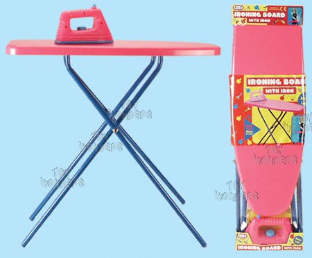 33088 Ironing Board w/ Iron. 22"L x 7.25"W x 19.5"H, ironing board. Also comes with an iron. Pink color.