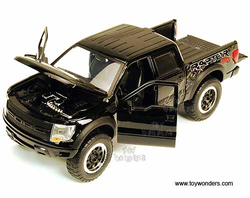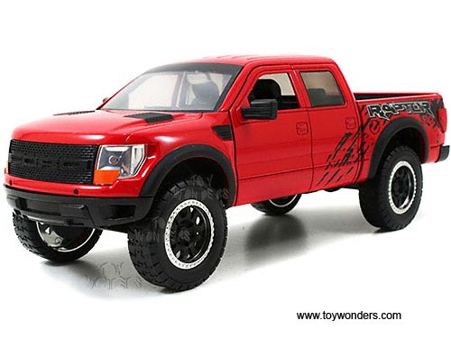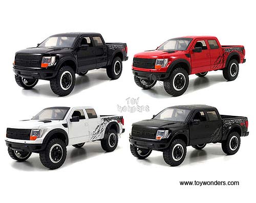 96387 Jada Toys Bigtime Kustoms - 2011 Ford F-150 SVT Raptor Pickup Truck. 1:24 scale diecast collectible model car. This Ford F150 SVT Raptor Pick-up is an 8.75"L x 3.5"W x 3"H die cast with openable doors, hood & tailgate. This Ford F 150 SVT Raptor Pick up is manufactured by Jada Toys. Individually packed in a window box WB. Box size: 10"L x4.75"W x 4.75"H. 6 pcs per inner box in assorted colors.