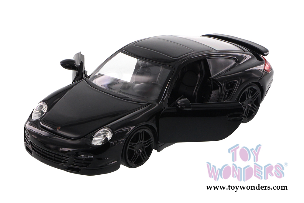 91852UE Jada Toys Bigtime Kustoms - Porsche 911 Turbo Hard Top. 1:24 Scale diecast collectible model car. This Porsche 911 Turbo is a 7"L x 3"Wx 2"H die cast metal car with openable hood, doors & trunk. Rims: Porsche 911 Stock. This Porsche 911 Turbo is manufactured by Jada Toys. Dubcity. Item 91852 is in assorted colors.