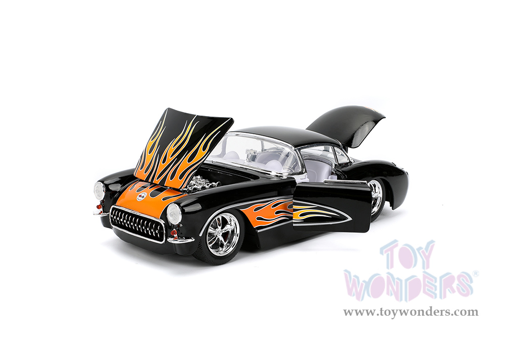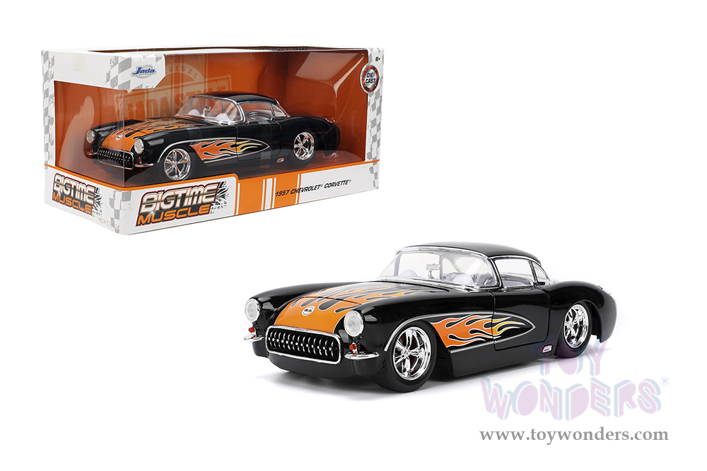 Jada Toys Bigtime Muscle - Chevrolet® Corvette® Hardtop (1957, 1/24 scale diecast model car, Black/w Flames) 36300