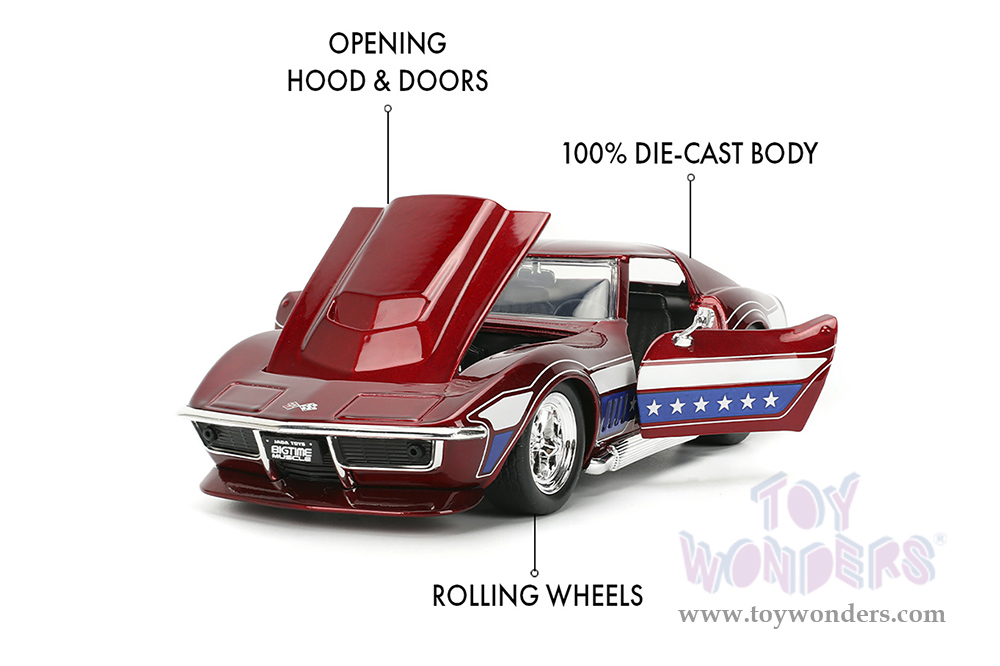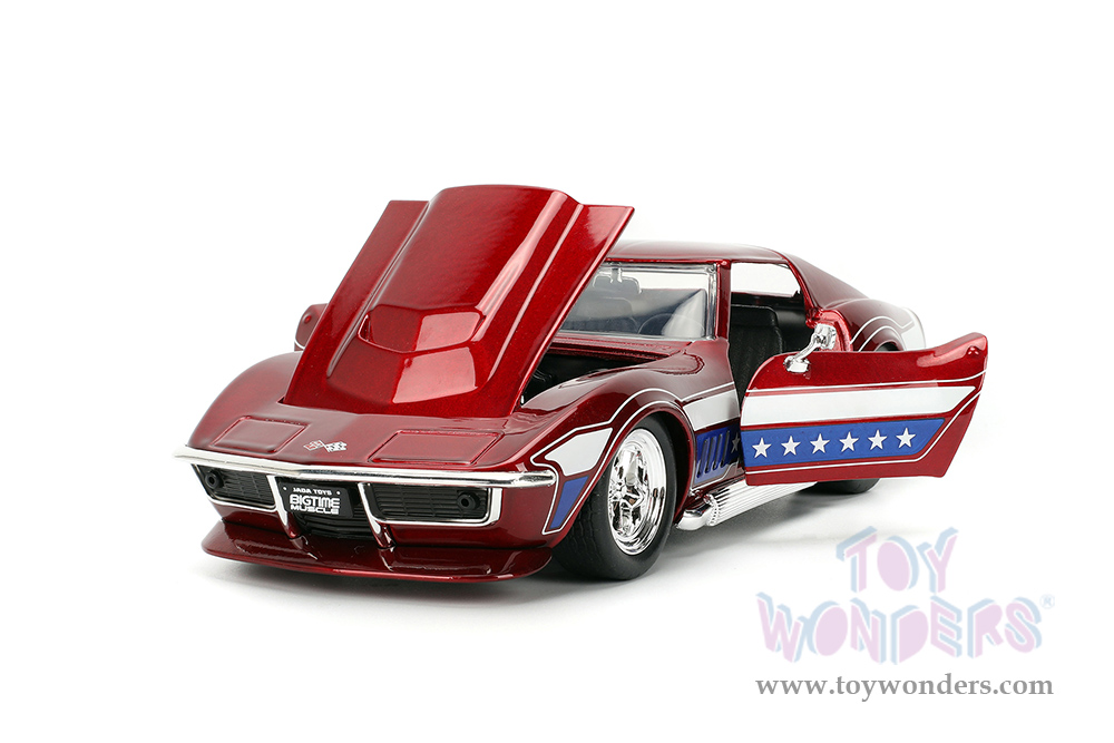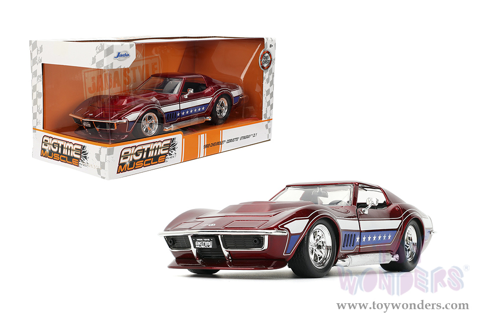 Jada Toys Bigtime Muscle - Chevrolet® Corvette® Stingray™ ZL-1 Hardtop (1969, 1/24 scale diecast model car, Candy Red/w White and Blue stripes) 35488