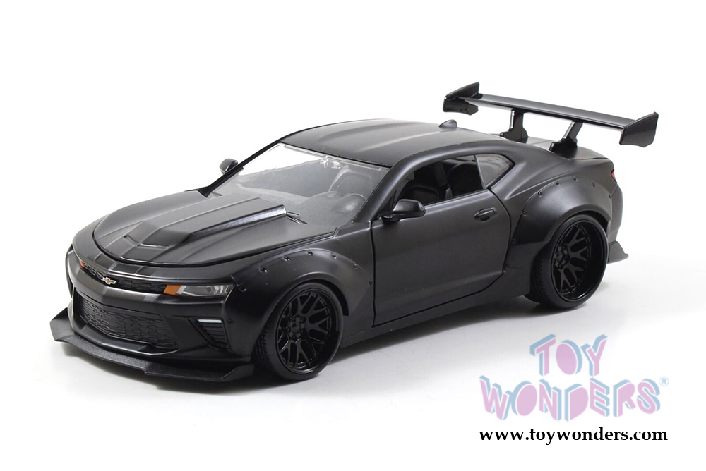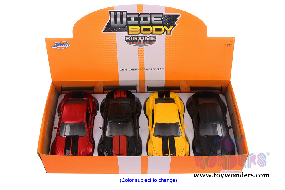 98140DP Jada Toys Bigtime Muscle - 2016 Chevy Camaro SS Hard Top. 1:24 scale diecast diecast model car. This Chevrolet Camaro SS is an 8.25"L x 3.5"W x 2.5"H die cast metal car with openable doors, hood & trunk. Rims: HRE 540R. Big Time Muscle, Wide Body wuth GT Wing. The Chevy Camaro is manufactured by Jada Toys. 16 pcs per inner box. 4 pcs per display box. 90535 in assorted colors. GM is a trademark of the General Motors Corporation.