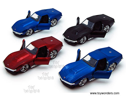96925 Jada Toys Big Time Muscle - 1969 Chevy Corvette Stingray ZL-1 Hard Top. 1:32 scale diecast collectible model car. This Chevrolet Corvette Sting Ray is a 5"L x 2"W x 1.5"H die cast classic muscle car with openable doors and KMC SS rims. This 69 Chevy Corvette Stingray ZL1 sports car is manufactured by Jada Toys. Bigtime Muscle. 12 pcs per display box in assorted colors. 60 pcs per inner. GM is a trademark of the General Motors Corporation.