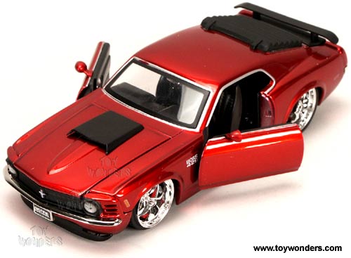 90211A DUB City Bigtime Muscle - 1970 Ford Mustang Boss 429 Hard Top. 1:24 scale diecast collectible model car. This 1970 Ford Mustang Boss 429 is 8.25"Lx 3.5"Wx 2.25"H die cast metal with opening doors, hood & trunk, KMC SS rims and street low rider. This 70 Ford Mustang Boss 429 is manufactured by Jada Toys. 4 pcs per display box. 16 pcs per inner box. 90211 in assorted colors.