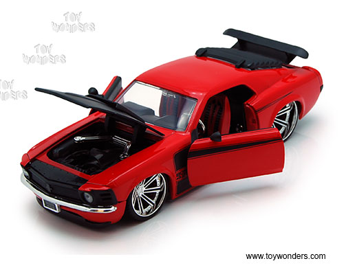 90211XW Jada Toys Bigtime Muscle - 1970 Ford Mustang Boss 429 Hardtop. 1:24 scale diecast collectible model car. This Ford Mustang Boss 429 is an 8.25"L x 3.25"W x 2.25"H diecast with openable doors, hood, and trunk. Rims: Saber 8. 4 pcs per display box in assorted colors. 16 pcs/inner. This 1970 Ford Mustang Boss 429 is manufactured by Jada Toys.
