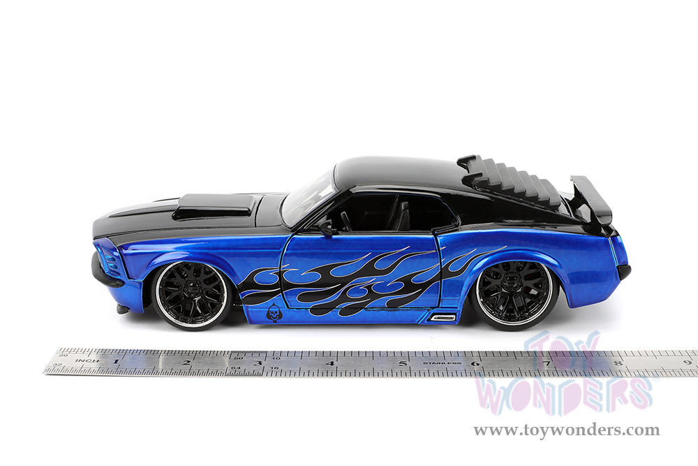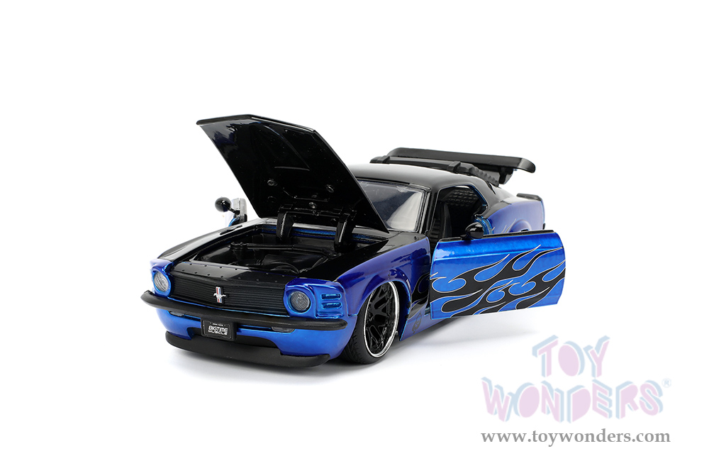 Jada Toys Bigtime Muscle - Ford Mustang Boss 429 Hardtop (1970, 1/24 scale diecast model car, Candy Blue/Black Flames) 36154