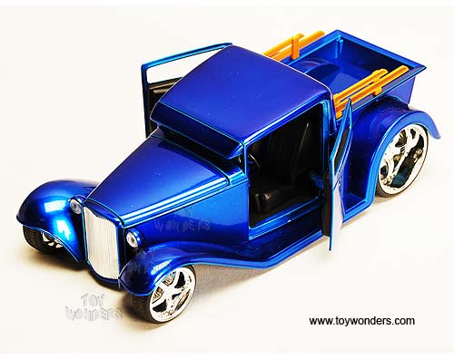 92410LC Jada Toys Dub City - 1932 Ford Pickup Truck. 1:24 scale diecast collectible model car. This Ford Pick-up Truck is a 7.75"L x 3.5"W x 2.75"H diecast car with openable doors, hood & trunk, and detailed engine. Rims: GFG Beverly Hills. This 1932 Ford Pick up Truck is manufactured by Jada Toys. Dubcity. 4 pcs per display box in assorted colors. 16 pcs per inner.