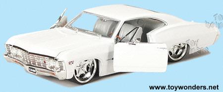 50317CC DUB City - 1967 OldSkool Chevrolet Impala. 1:24 scale diecast model car. This 1967 Chevy Impala is an 8" long diecast classic with opening doors/hood, Colorado Custom SugarCity rims, and street low rider. This 67 Impala is manufactured by Jada Toys. 4 pcs per display box. 20 pcs per inner box. GM is a trademark of the General Motors Corporation.