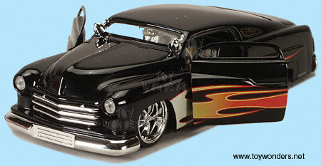50937CA DUB City Mercury (1951). 1:24 scale diecast model car. This 1951 Ford Mercury is an 8.5" long diecast metal car with opening doors/trunk/hood, hydraulic system installation, KMC rims, and street low rider. This 1951 Mercury is manufactured by Jada Toys. 4 pcs per display box and in assorted colors.