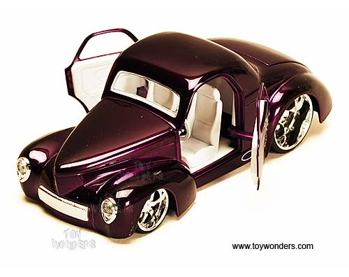 92414LB Jada Toys Dub City - 1941 Willys Coupe Hard Top. 1:24 scale diecast collectible model car. This Willys Coupe is a 8.255"L x 3.25"W x 3"H diecast car with openable doors, hood & trunk, and detailed engine. Rims: GFG Spiello 6. This 1941 Willys Coupe is manufactured by Jada Toys. Dubcity. 4 pcs per display box in assorted colors. 16 pcs per inner.