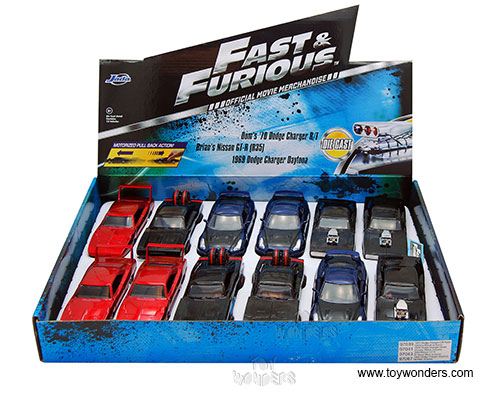 97110 Jada Toys Fast & Furious Assortment Hard Top. 1:32 scale diecast collectible model car. These assortment cars are 5 1/2"L x 2"W x 1.5"H die cast classic muscle cars from the Fast & Furious movie. Free wheeling with openable doors. These cars are manufactured by Jada Toys. It comes 12 pcs per display box in assorted colors and styles. 60 pcs per inner.